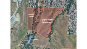The landing area on the eastern side of the Mitchell Canyon LZ can be accessed through the footpath entrance to the Park on Mount Tamalpais Drive. The field slopes gently uphill in the westerly direction, and undulates somewhat in the north-south direction. Typically, this field is selected if westerly wind has developed at the lower altitudes after launching from the Tower. Turbulence from the Mt. Zion quarry can be avoided by circling down over the Park lands further to the east of Mitchell Canyon, then making a final approach in the smoother air over the LZ. Mitchell Canyon has a 6:1 glide ratio from the Tower Launch.