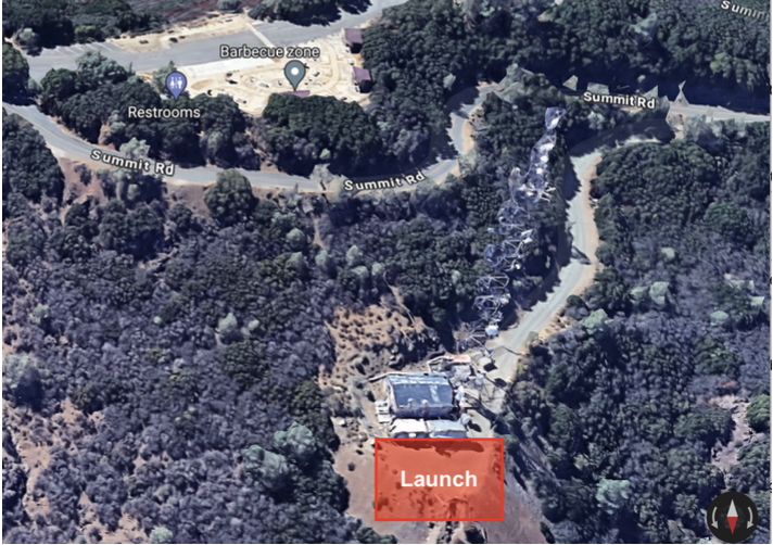 Located at the end of Mitchell Canyon Road in Clayton, at the entrance of the park. this is the largest designated LZ at Mount Diablo, with few obstacles. There is a residential powerline opposite the road along the western edge of the field, and a relatively low tree line along the eastern edge. This is an easy landing site but remember it’s a 6:1 glide ratio from the Tower launch site. All wind flagging will be removed after each flight.